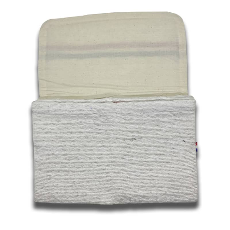 Pochette modèle Okinawa réalisée en serpillières recyclées. Avec rabat et deux compartiments à l’intérieur.